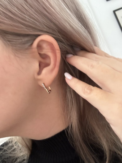 Красивые, стильные , удобная посадка сережек на мочке уха.