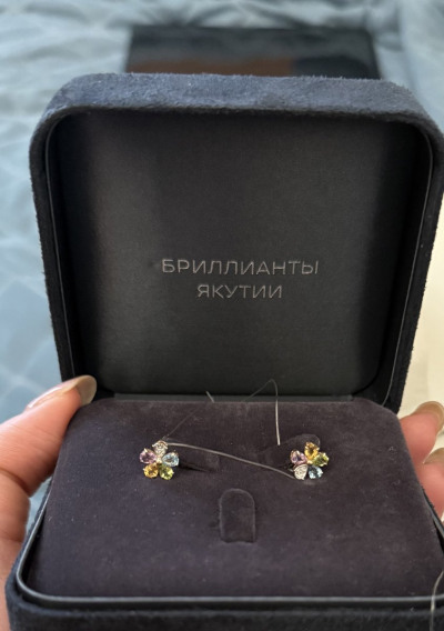 Золотые серьги с природными цитринами, топазами, аметистами, хризолитами и бриллиантами