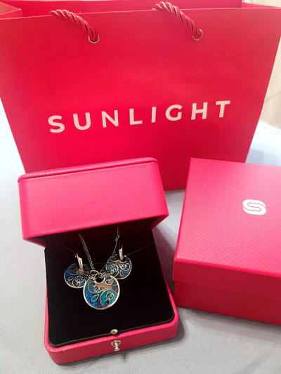 Серьги выкупила. Ношу с удовольствием. При ходьбе позвякивают. Собрала весь комплект. Спасибо Санлайту и девушке консультанту.