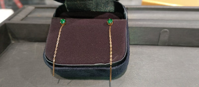 Очень долго смотрела и выбирала варианты протяжек,хотелось именно с изумрудом.Сходила в ТЦ Шоколад г.Реутов и приобрела данные сережки))Камень яркий (т.к. выращенный)Сам камень небольшой,но очень яркий)Коллеги сразу заметили обновку 😀Теперь осталось немного отложить денег,чтоб купить полный комплект - кольцо и подвеску 😍Всегда отличные скидки и упаковали в шикарную коробочку !Спасибо!