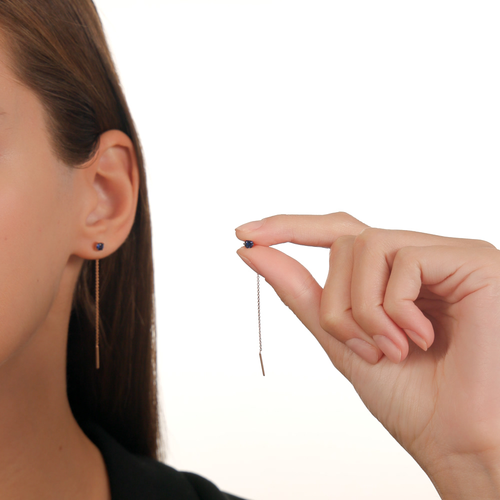 Серьги с 2 сапфирами синтетическими, 0.43 карат;