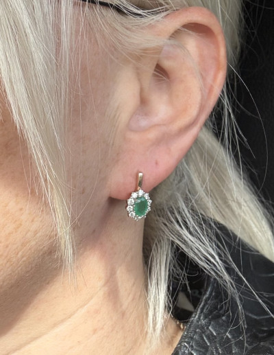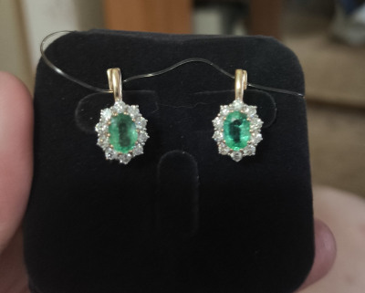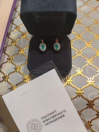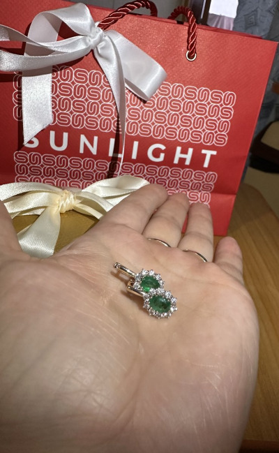 Супруг подарил мне замечательные серьги, смотрятся превосходно, изумруд большой натуральный, брильянты сверкают, застёжка надежная, ношу радуюсь!