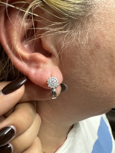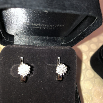 Серьги с 38 бриллиантами природными, 0.36 карат, огранка круг 57 граней, цвет 4, чистота 6, тип огранки А;