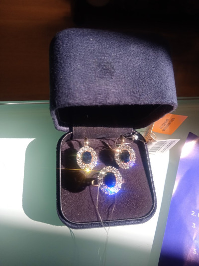 2 сапфирами природными, 2.98 карат, цвет 2, чистота 2, тип огранки Б;