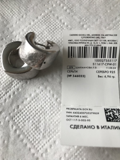К самому изделию нареканий нет, НО Есть не соответствие описания товара на сайте и на бирке которая была у серёжек! На сайте серебро пробы 960 а на бирке проба серебра 925! Чему реально верить?! Фото прилагаю