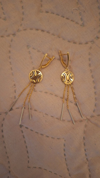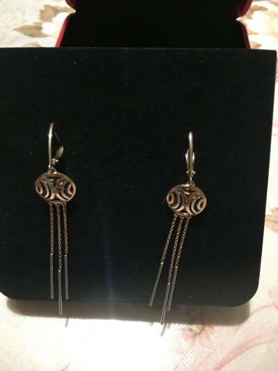 Спасибо за серьги, не нарадуют душу. Крепкие замочки, интересный нестандартный дизайн, есть в них что-то восточное) чувствуется это приятное покачивание на ушке. Притягивают взгляды окружающих, так как собирают много комплиментов. Длина серёг вместе с ушком 6,5 см. Можно и в пир, и в мир!)