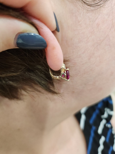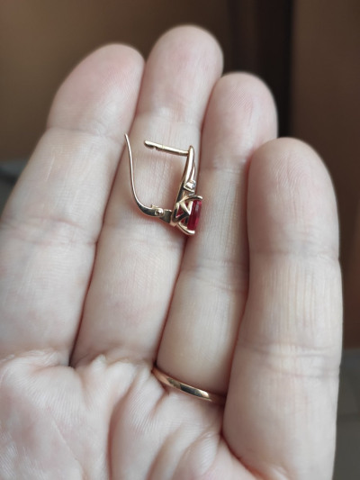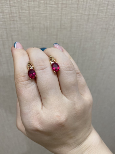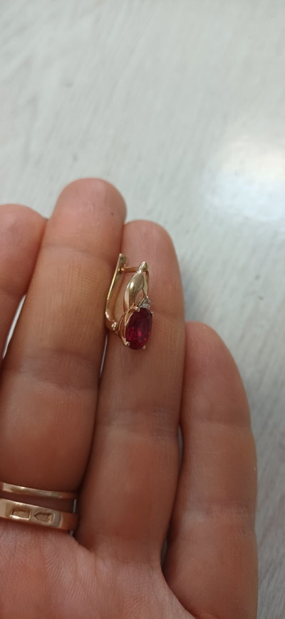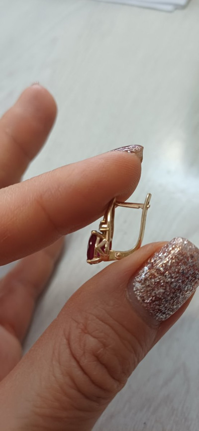 Давно хотела эти серьги в комплект к колечку. Я счастлива! Очень красивые, лаконичные, на любой самый высокий прокол и толстую мочку подойдут. Приятно, что вес в реальности оказался больше, чем в карточке на 0,4 грамма. Рубины хорошего размера сияют, очень заметные. Замочек крепкий. Сплю в них не мешают.