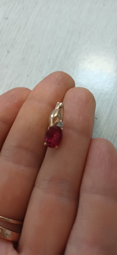 Чудесный гидротермальный рубин- прозрачный. Замочек крепкий и надежный. Ношу уже 8 месяцев- никаких проблем не было. Спасибо магазину)