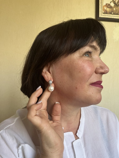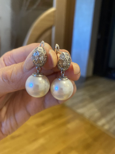 Элегантные серебряные серьги в винтажном стиле с крупным жемчугом, за достаточно низкую цену, смотрятся дорого и богато! Ношу их уже больше года, как говориться, и в пир и в мир! Выглядят как новенькие!
