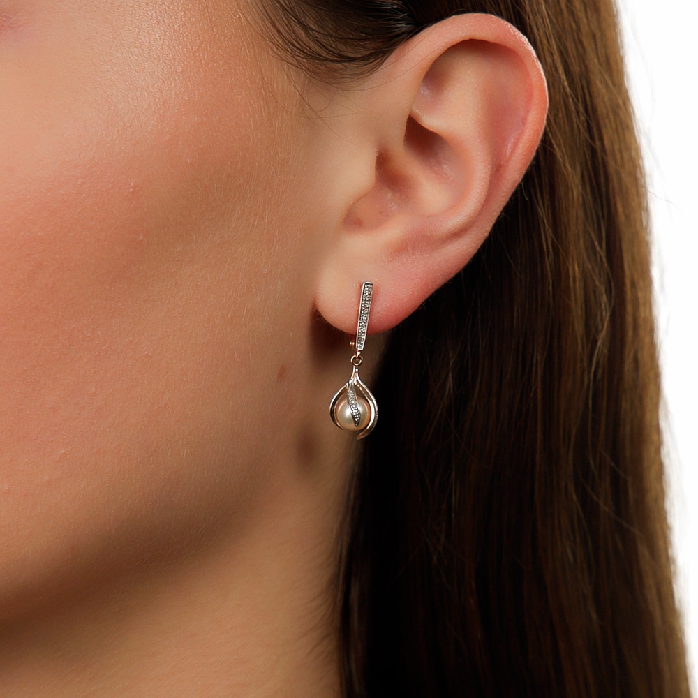 Золотые серьги с бриллиантами природными и жемчугами природными культивированными
