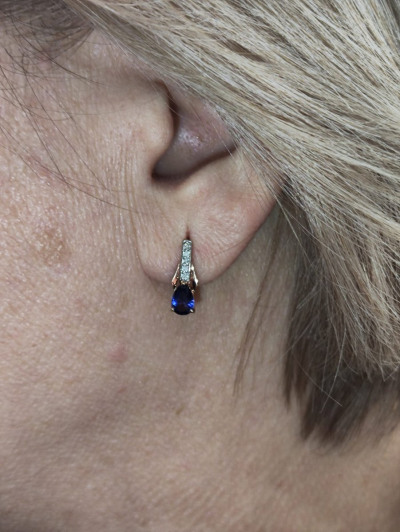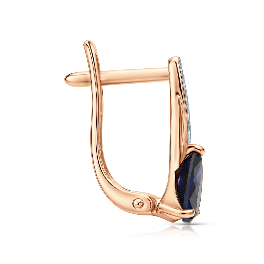 Золотые серьги с бриллиантами природными и сапфирами выращенными