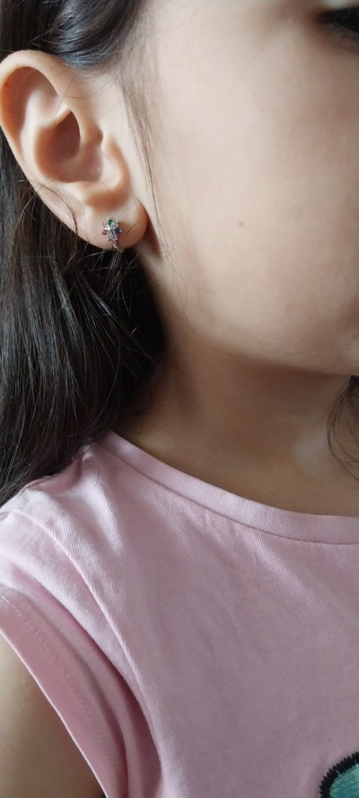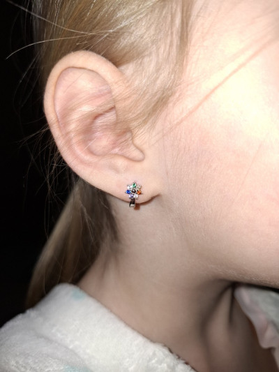 Серьги очень красиво смотрятся, покупала ребенку (4 года), в области мочки уха серьга почти впритык, но ребенку в них комфортно, не давят. Думаю данная модель всё-таки для девочек помладше), хотя примеряла на себя- мне тоже не давили