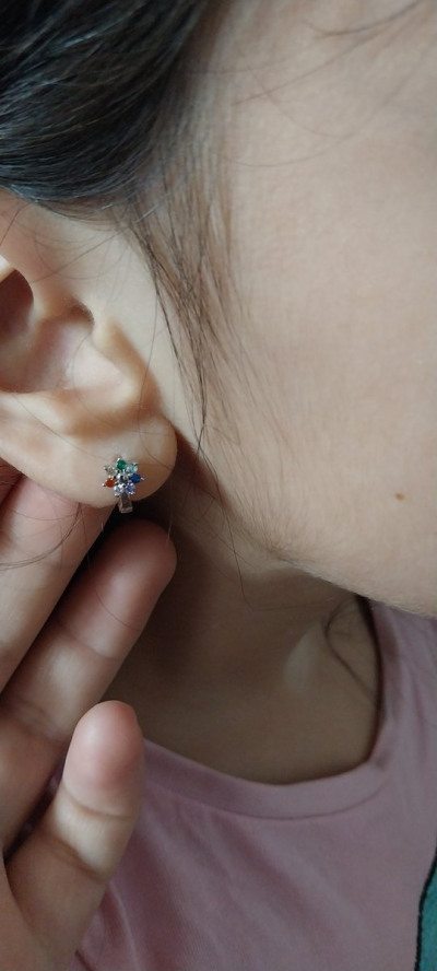 Очень красивые детские серьги. Камушки разноцветные, красивые.