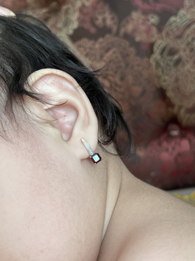 Серьги на фото мне показались больше, чем есть в жизни. Но тем не менее, они очень красивые и лаконичные. Глубокий цвет камня. Нравится застежка, и в серьгах удобно спать. Благодарю!