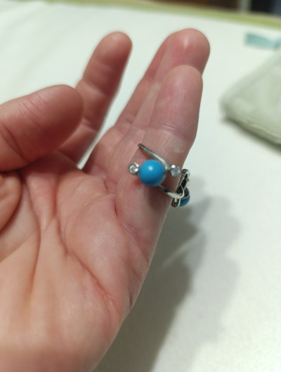 Купила весь комплект: серьги и кольцо, хотя не планировала. Магазин дал такую привлекательную цену, что не взять нельзя. Комплект видный, заметный. Серьги лёгкие, комфортные. Благодаря форме-шарику хорошо смотрятся.