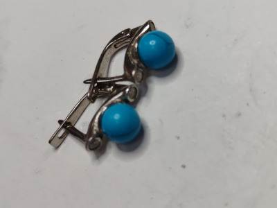 Серебряные серьги с фианитами и бирюзой синтетической