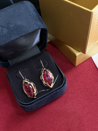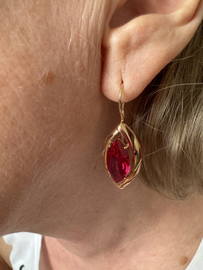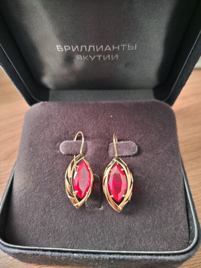 Золотые серьги с рубинами выращенными