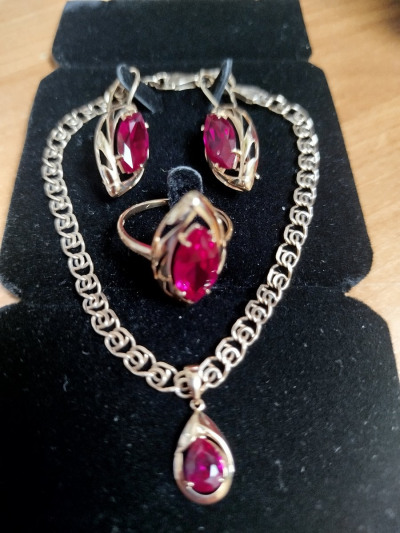 Я в полном восторге! Давно искала рубины ромбовидной формы. Цвет изумительный на солнце сияют, взгляд не оторвать. И перстень и серьги и кулон великолепно смотрятся! Я очень довольна покупкой, тем более, что это подарок ко Дню Рождения!