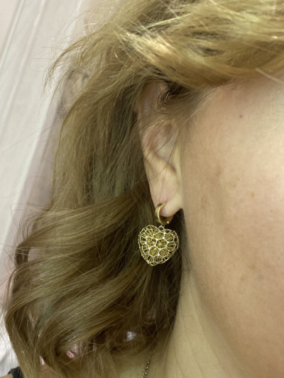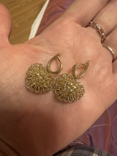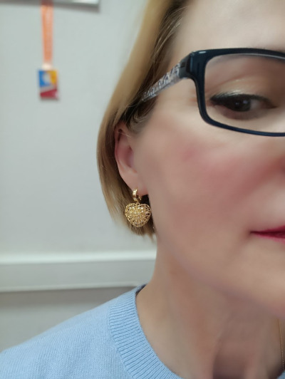 Долго на них смотрела, муж подарил на праздник День матери. Смотрятся не инфантильно, не громоздко. Легкие интересные. За год примерно человек 10 сказали что очень красивые серьги, хотя ношу не каждый день.