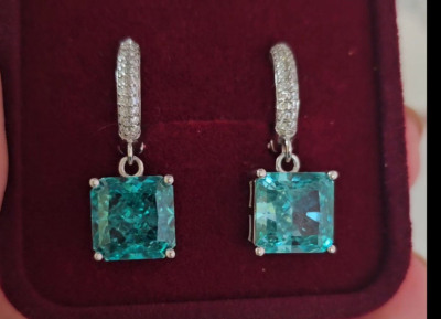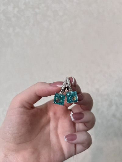 Очень красивые кристаллы цвета параиба. В глубине каждого камня есть красивые переливы,серебристые искорки. Серьги,поднимающие настроение. Рекомендую👍