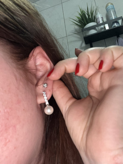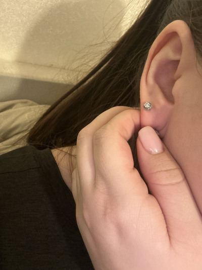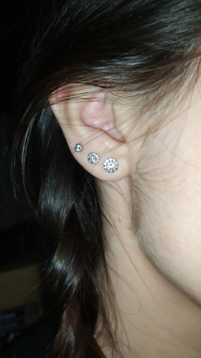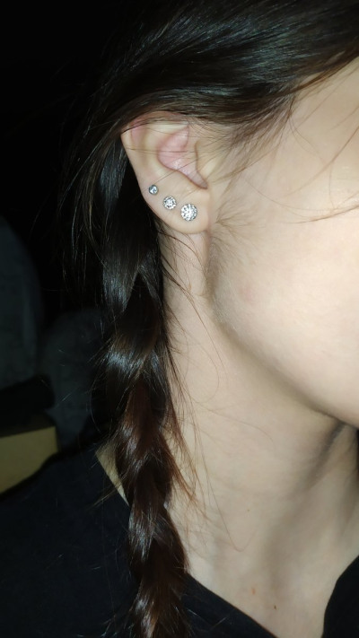 Очень удобные. Ношу каждый день, и даже на ночь не снимаю. На ушах не ощущаются. На фото они по центру.