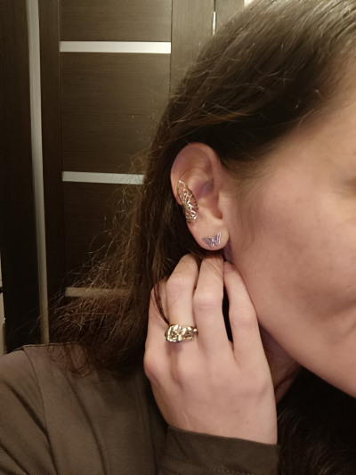 Серёжки на фото смотрятся простовато, но заказала... И влюбилась в них как только увидела 🥰 они очень милые, нежные, настолько обалденные что буду носить их не снимая! Спасибо производителям за такую красоту!