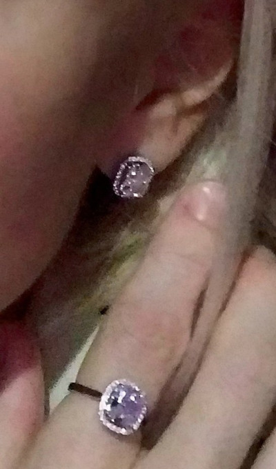 Сережки очень красивые,камешек переливается ,на солнце искрится,купила комплектом с колечком,очень нравится