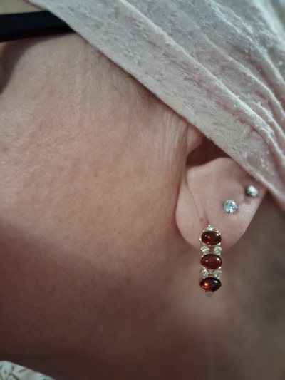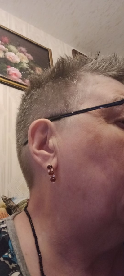 Серьги замечательные! Янтарь красивый, цвет коричнево-красный. Хорошая глубина, на мочке сидят свободно. Выглядят очень нарядно. Покупкой довольна. Рекомендую