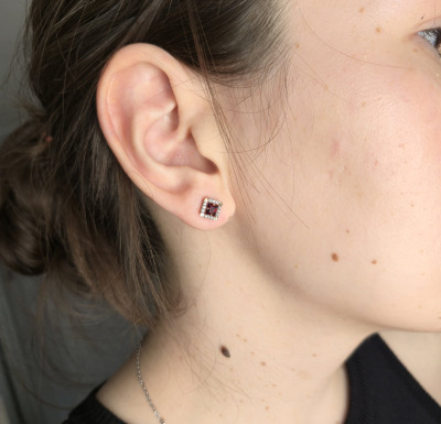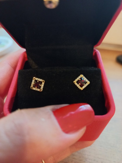 В редких случаях характеристики украшения или упаковка могут иметь отличия от представленных на фото или в описании.Серьги с 2 гранатами природными, 0.86 карат;