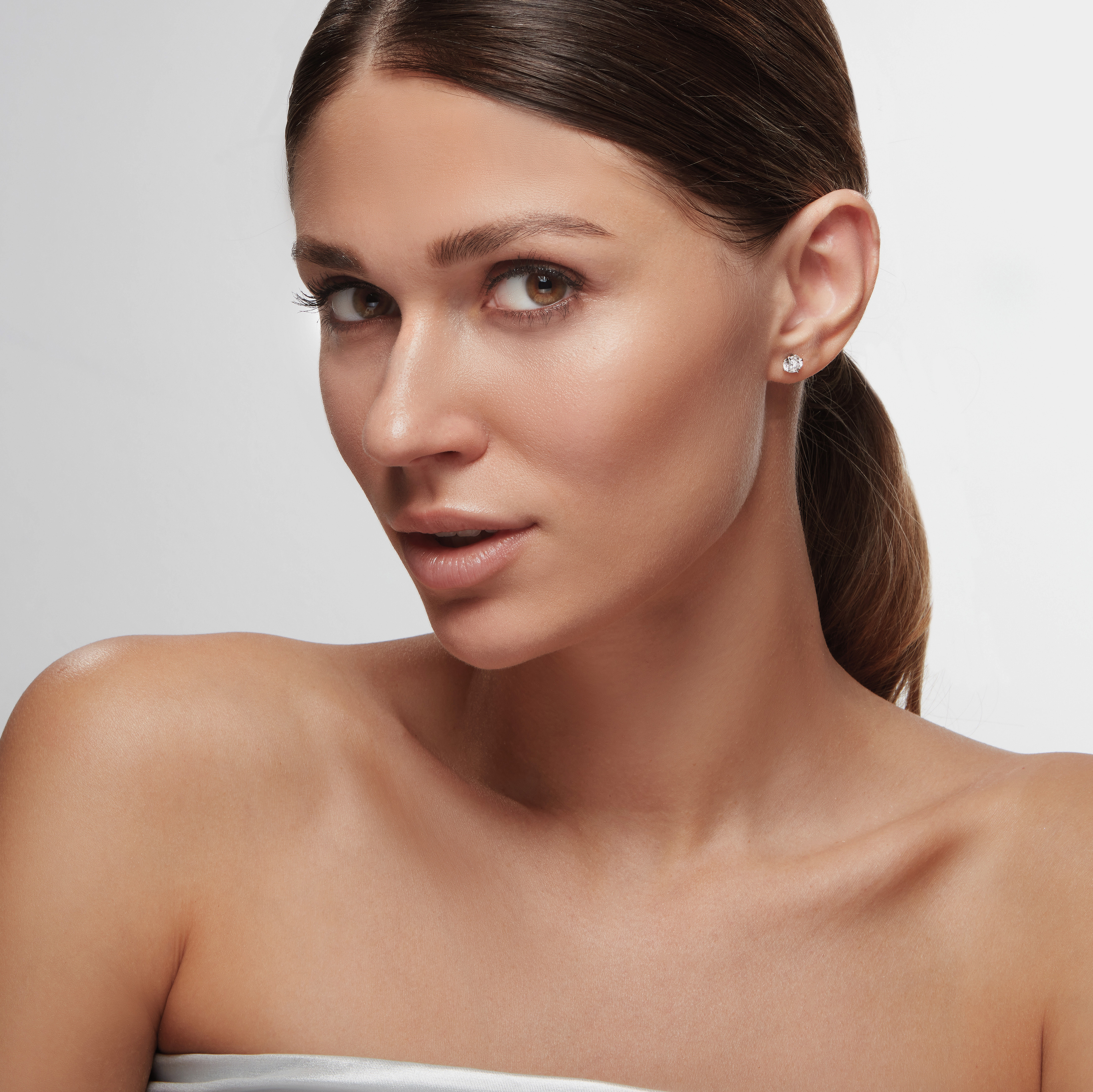Серьги с 2 бриллиантами выращенными, 1.48 карат, огранка круг 57 граней, цвет 4, чистота 6, тип огранки А;