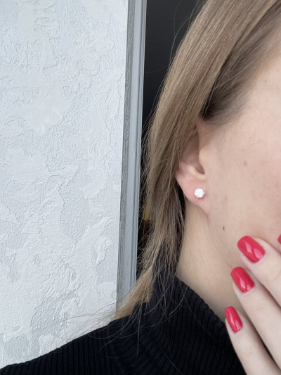 Серьги с 2 бриллиантами выращенными, 1.05 карат, огранка круг 57 граней, цвет 4, чистота 6, тип огранки А;