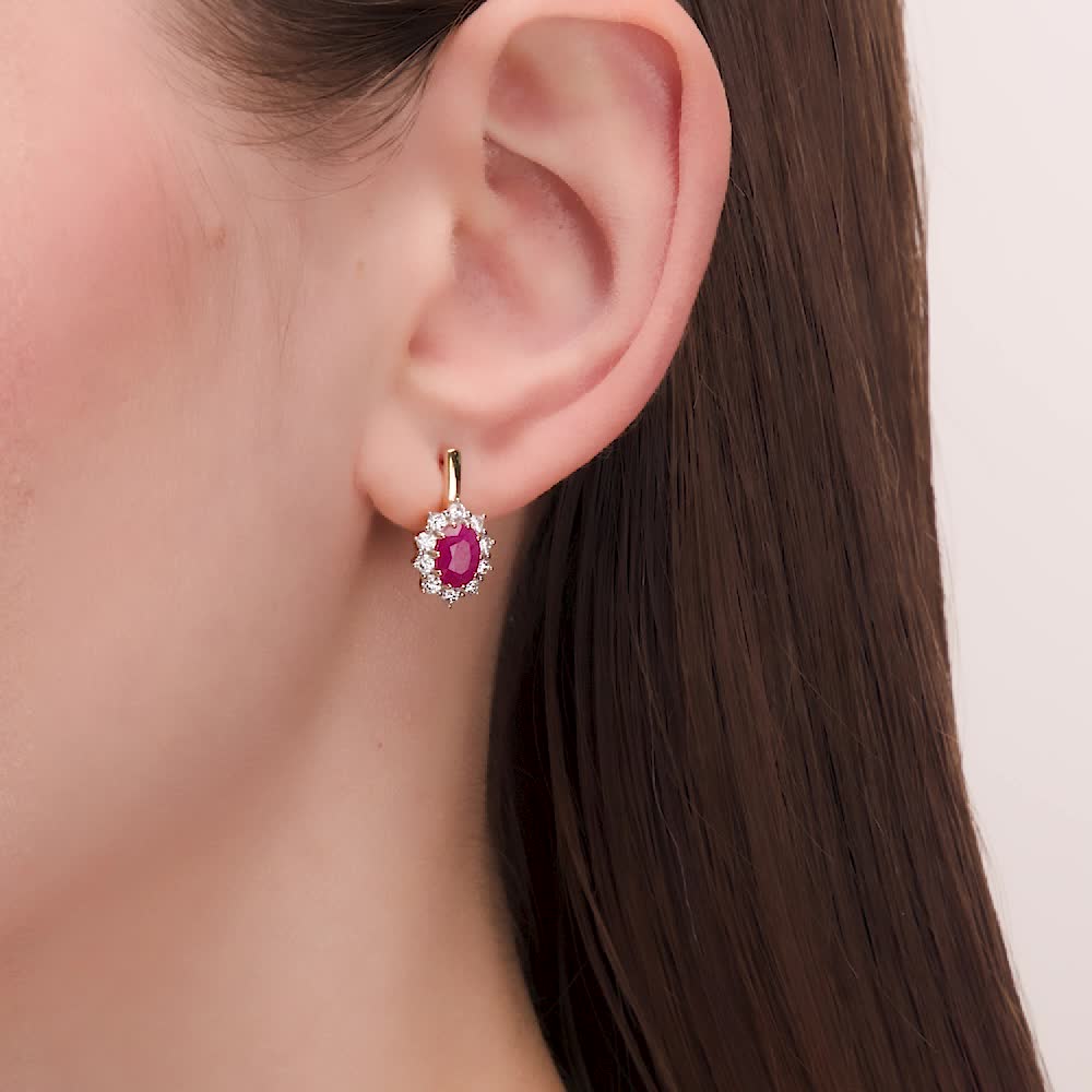 Золотые серьги с бриллиантами природными и рубинами природными