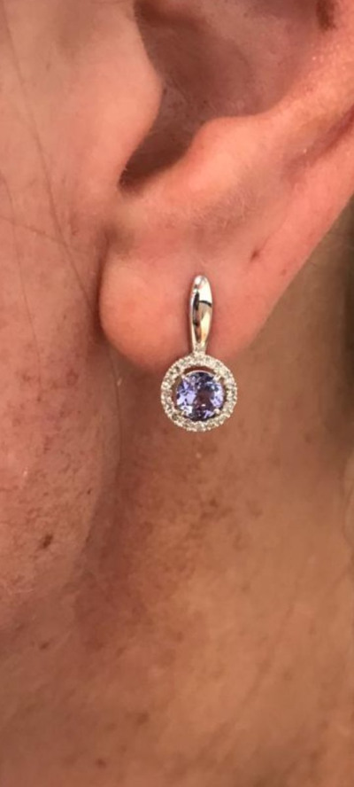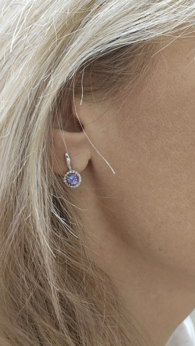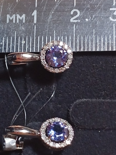 Серёжечки очень Красивые! Размер небольшой, но на ушках очень заметны. Танзаниты бесподобны! Я купила полностью комплект. Серьги, Перстень, Кулон.