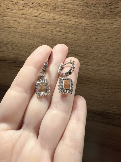 • Серьги с 48 бриллиантами природными, 0.19 карат, огранка круг 17 граней, цвет 2, чистота 2, тип огранки А;