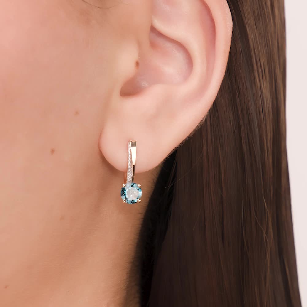 Золотые серьги с бриллиантами природными и топазами природными
