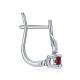 Серебряные серьги с фианитами и рубинами природными