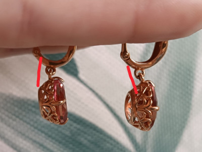 Ушки для подвешивания камней погнуты в разные стороны, замочки слишком "мягкие". А так серьги, конечно, красивые. Переходы цвета камня нежнейшие.
