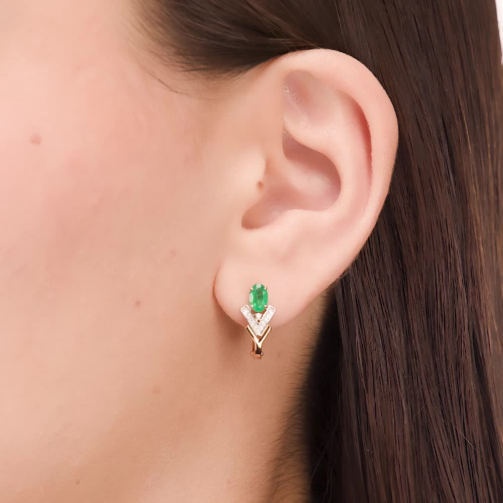 Золотые серьги с бриллиантами природными и изумрудами природными