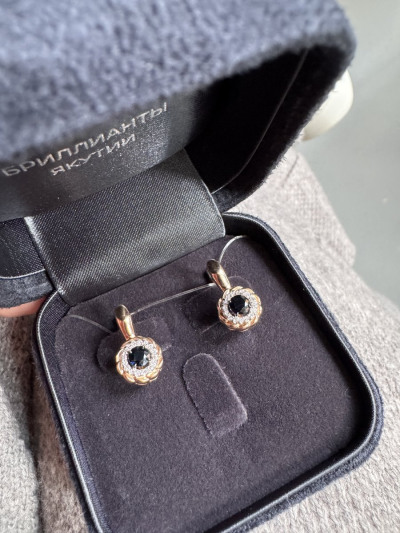 Золотые серьги с бриллиантами природными и сапфирами природными