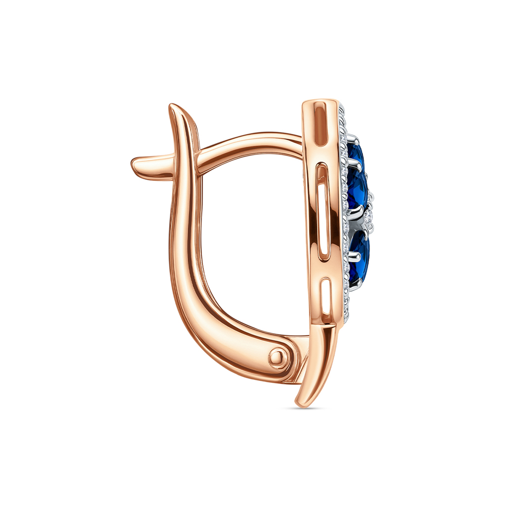 Золотые серьги с бриллиантами природными и сапфирами выращенными