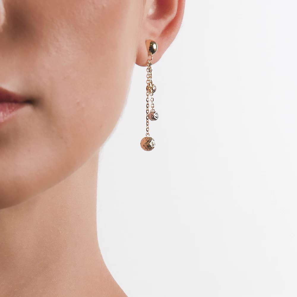 Сверкающие! Переливаются, удобные, замок-бабочка крепкий. Длина всей серьги 4 см.