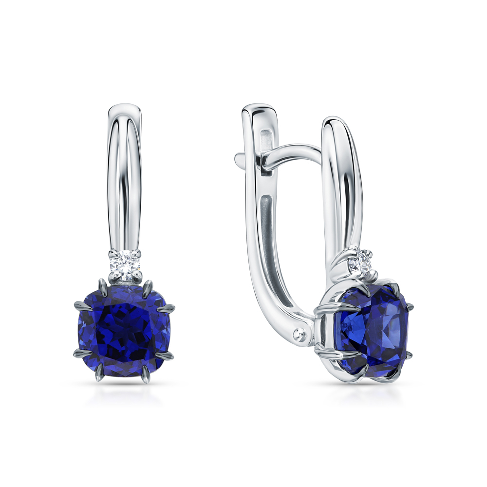 Золотые серьги с бриллиантами выращенными и сапфирами выращенными