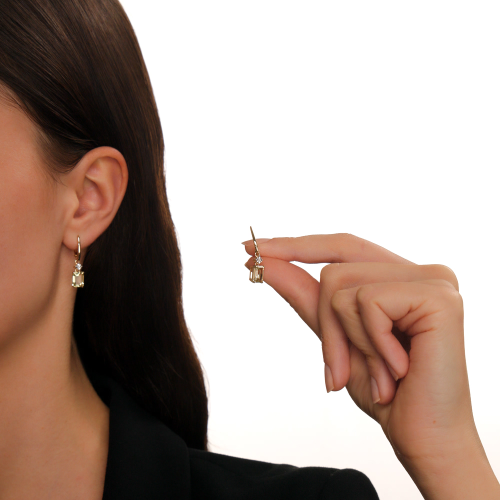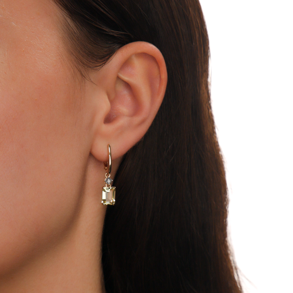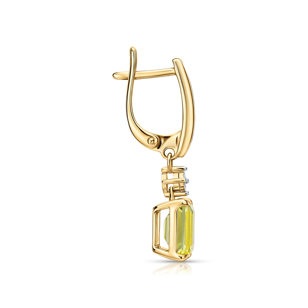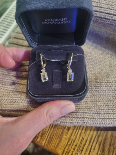 Золотые серьги с бриллиантами природными и кварцами природными