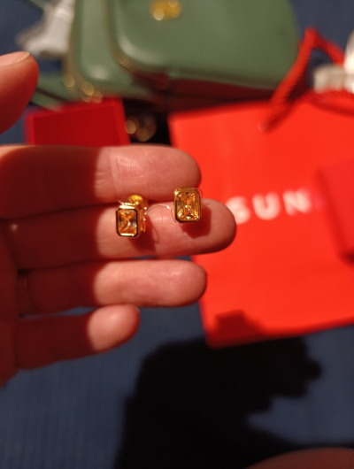 Ношу золото и хотелось серьги минималистичные и при этом с камнем, причем именно желто-оранжевой гаммы. Эти серьги подошли по всем критериям - позолоченные (цена доступнее, чем у золотых), шикарный цвет шампань, ничего лишнего, аккуратная приятная форма.