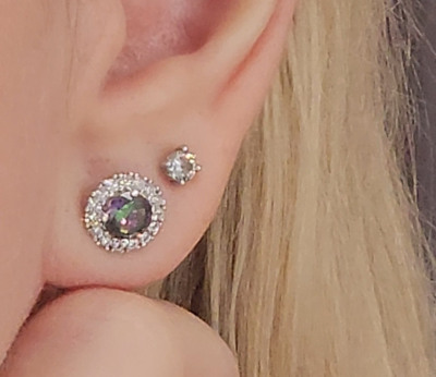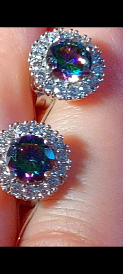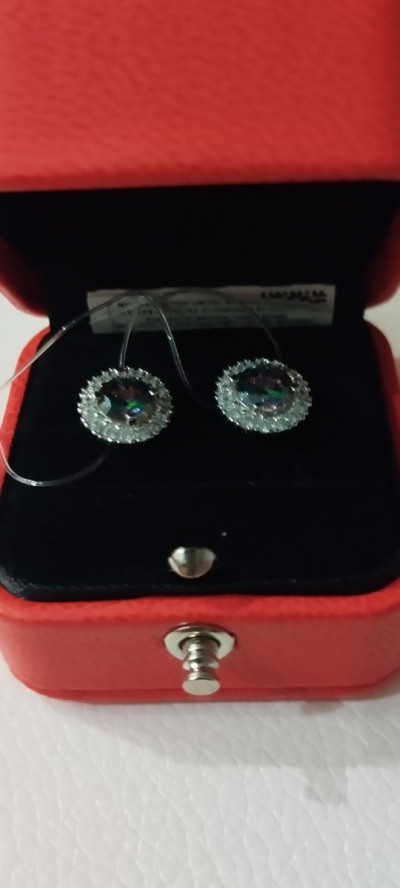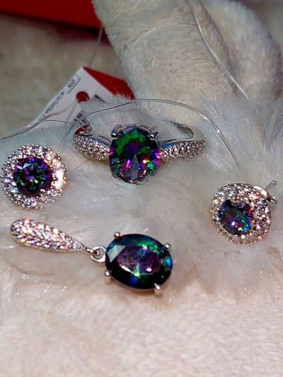 Яркий, радужный фианит - мистик, невозможно не влюбиться в эту игру цвета, лаконичные пусеты, зажимы хорошо держат, качественная ювелирная работа, приобретен комплект , сочетаются с другими изделиями из серии "мистик " от Sunlight , спасибо за красоту !