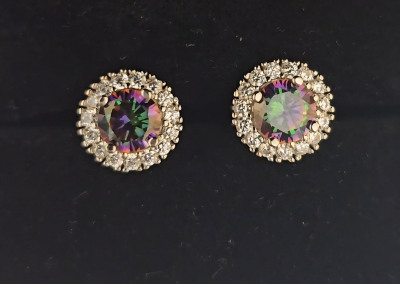 Очень необычнвй фианит в середине переливается разными цветами! А обрамление белыми фианитами придает достоинство и благородство изделию!