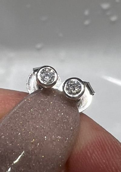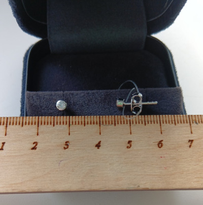 Оказались меньше, чем казались на фото. В диаметре примерно 4 мм. Тем не менее, хорошо видны. Бриллиант хоть и маленький, но настоящий, не осколочек. Завораживает игрой света, когда огонёк внутри камешка рассыпается радужными искрами. Очень удобные, ровные, гладкие, нигде ничего не цепляет, не мешают спать. Подойдут на основной и дополнительные проколы. Спасибо!