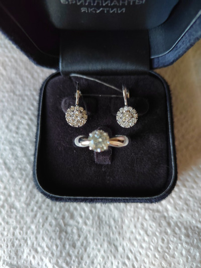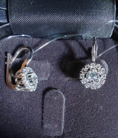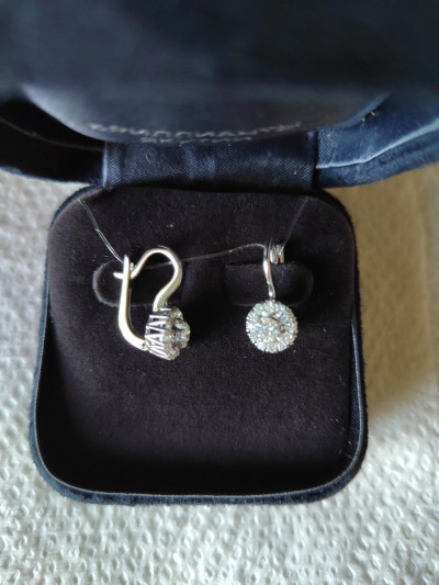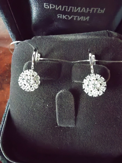 Изумительные серёжки. Бриллианты сверкают, блеск их завораживает. Хоть бриллианты и выращенные, но их красота нисколько не уступит природным. Серьги не большие, но и не маленькие, размер то что надо.. Я в восторге. Купила серёжки к ранее подаренному кольцу. Получился очень красивый комплект. Радости нет предела. Спасибо огромное ювелирам за изысканное украшение.