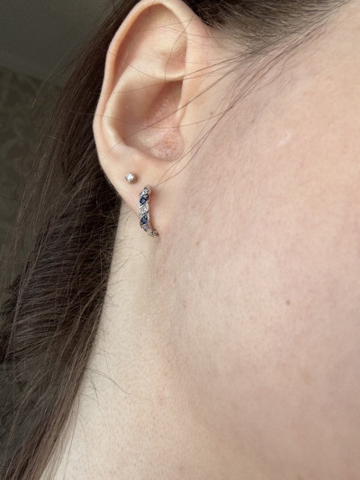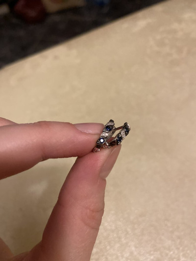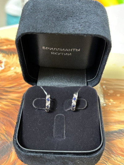 Очень красивые сережки, капни темно голубые но порой на освящение кажутся черными. Бриллианты сверкают. Удобно спать,не тяжелые и не колются , советую 👍❤️😍