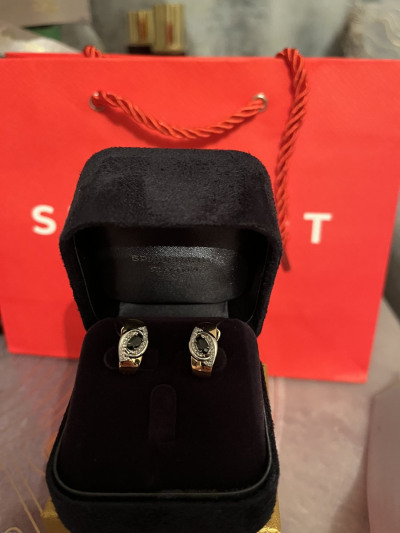 Золотые серьги с бриллиантами природными и сапфирами природными